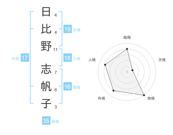 日比野 志帆子さんを姓名の画数から五運を鑑定