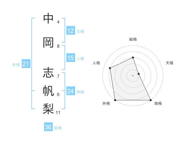 中岡 志帆梨さんを姓名の画数から五運を鑑定