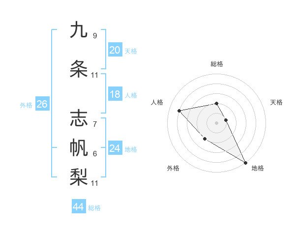 九条 志帆梨さんを姓名の画数から五運を鑑定