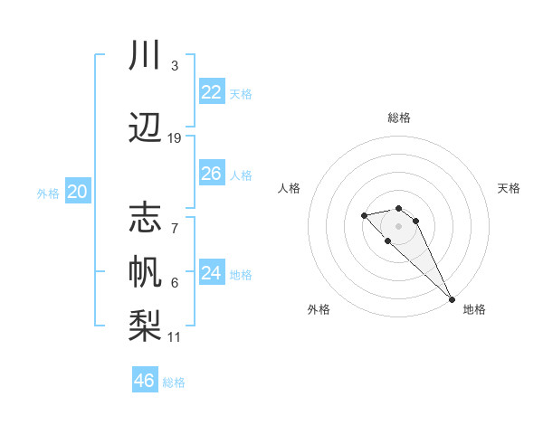 川辺 志帆梨さんを姓名の画数から五運を鑑定