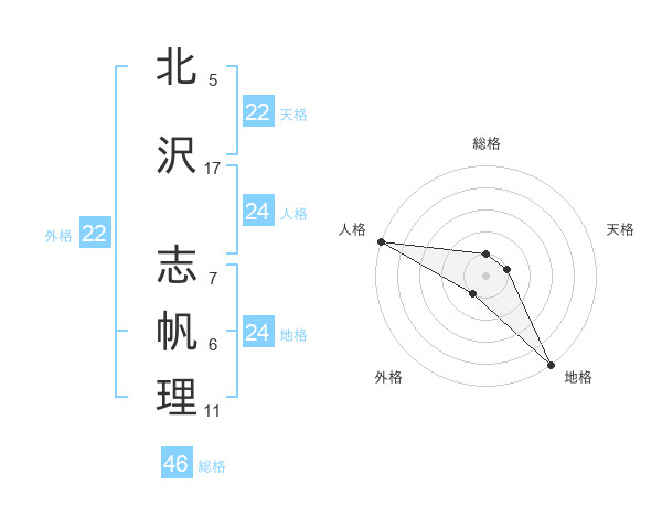 北沢 志帆理さんを姓名の画数から五運を鑑定