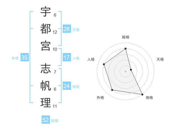 宇都宮 志帆理さんを姓名の画数から五運を鑑定