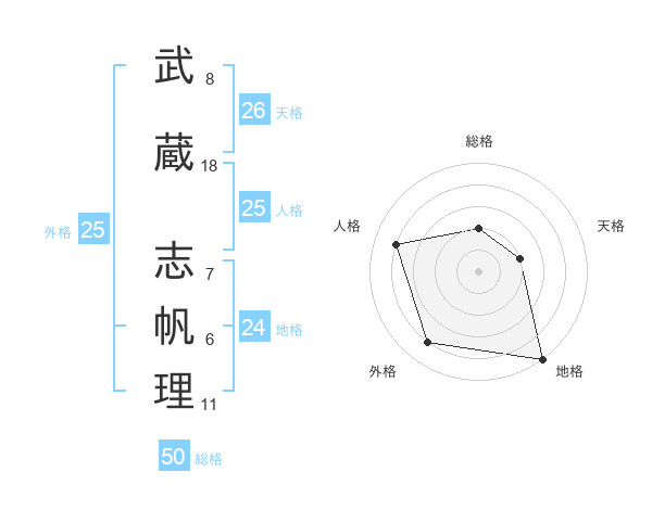 武蔵 志帆理さんの総格は50画の2点!