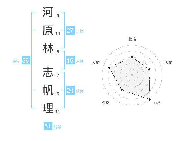 河原林 志帆理さんを姓名の画数から五運を鑑定