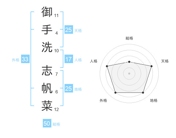 御手洗 志帆菜さんの地格は25画の4点!