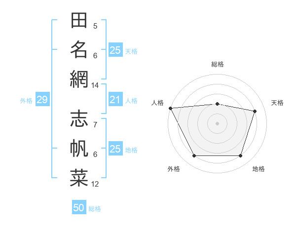 田名網 志帆菜さんを姓名の画数から五運を鑑定