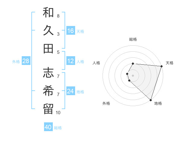 和久田 志希留さんを姓名の画数から五運を鑑定