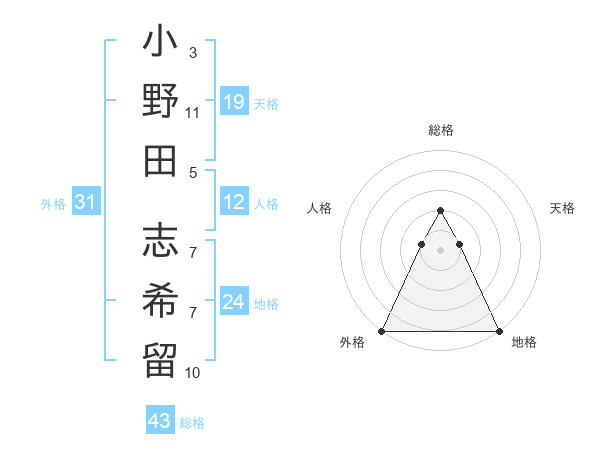 小野田 志希留さんを姓名の画数から五運を鑑定