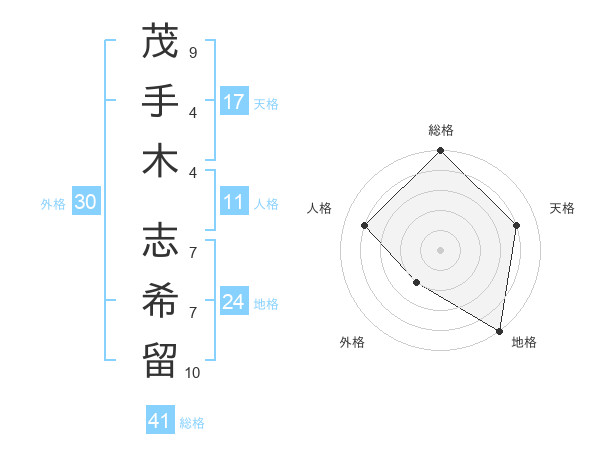 茂手木 志希留さんを姓名の画数から五運を鑑定