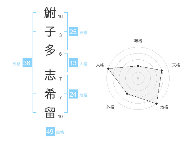 鮒子多 志希留さんを姓名の画数から五運を鑑定