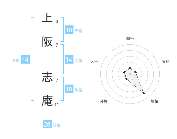 上阪 志庵さんを姓名の画数から五運を鑑定