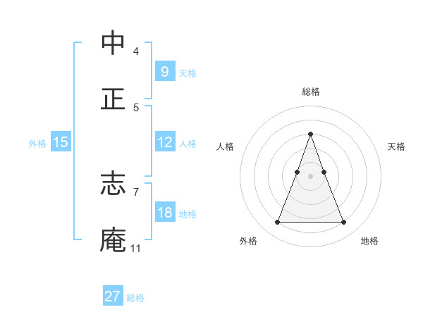 中正 志庵さんの総格は27画の3点!