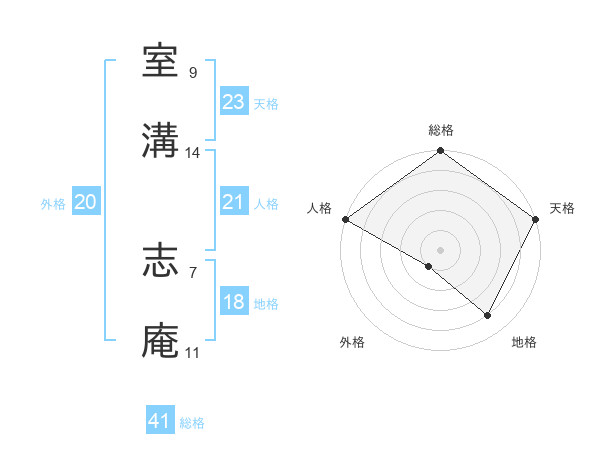 室溝 志庵さんの天格は23画の5点!