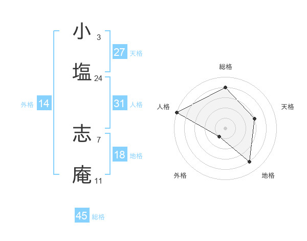 小塩 志庵さんを姓名の画数から五運を鑑定