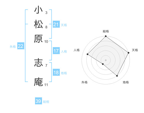 小松原 志庵さんの総格は39画の5点!