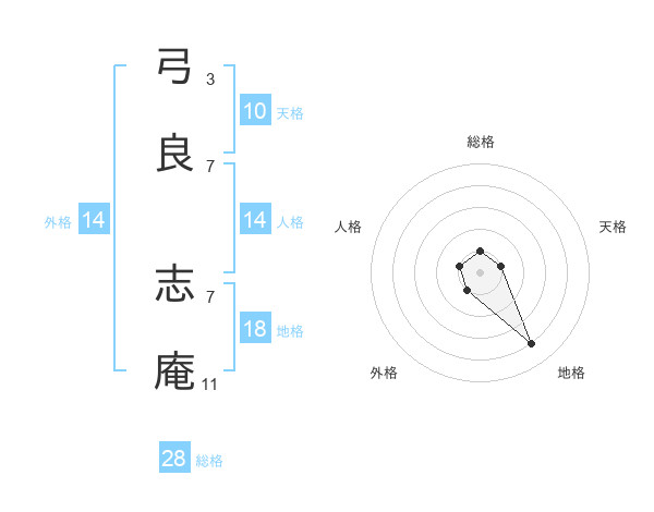 弓良 志庵さんを姓名の画数から五運を鑑定