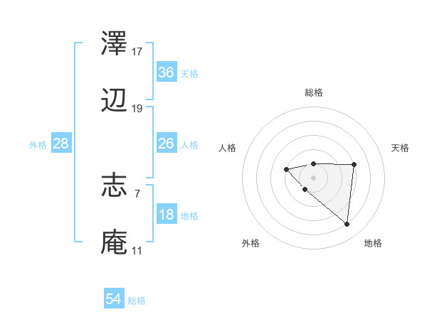 澤辺 志庵さんの天格は36画の3点!