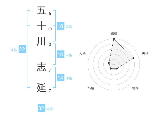 五十川 志延さんの総格は32画の5点!