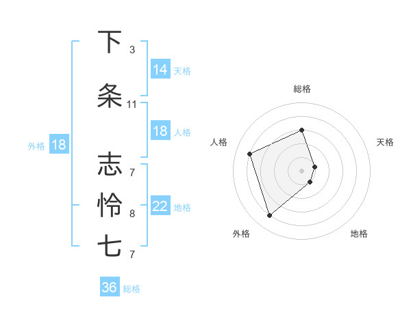 下条 志怜七さんを姓名の画数から五運を鑑定