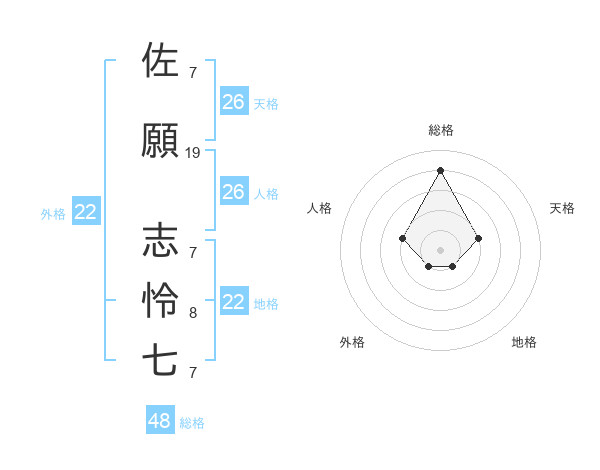 佐願 志怜七さんを姓名の画数から五運を鑑定