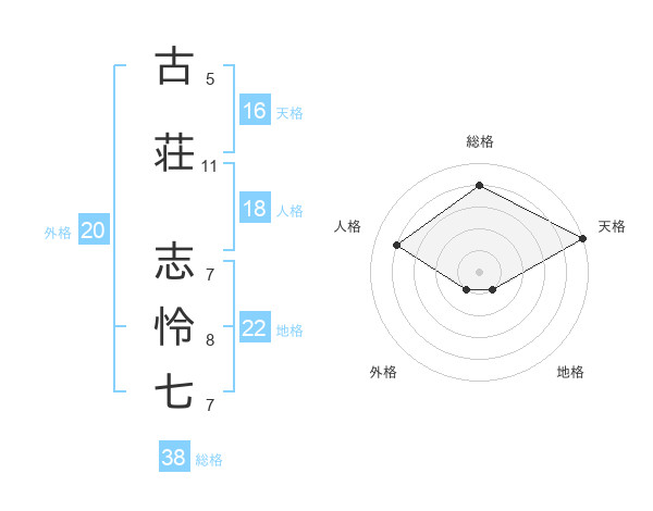 古荘 志怜七さんを姓名の画数から五運を鑑定