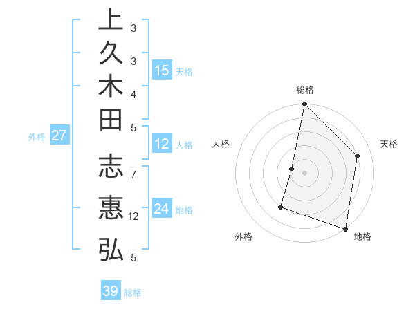 上久木田 志惠弘さんの総格は39画の5点!