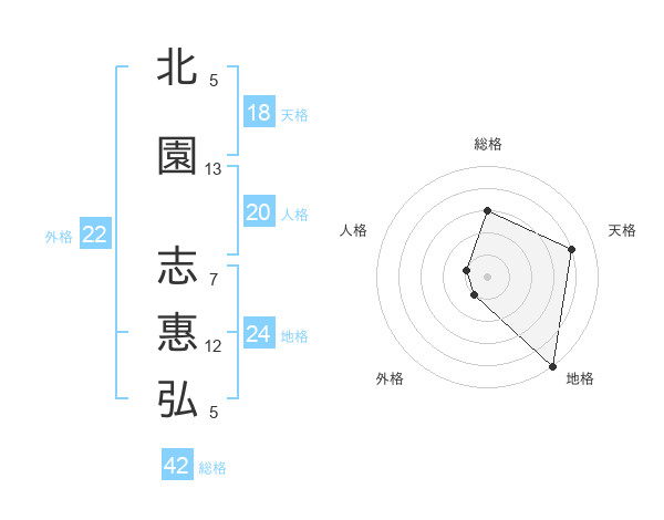 北園 志惠弘さんを姓名の画数から五運を鑑定