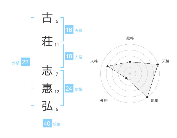 古荘 志惠弘さんを姓名の画数から五運を鑑定