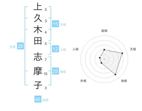 上久木田 志摩子さんを姓名の画数から五運を鑑定