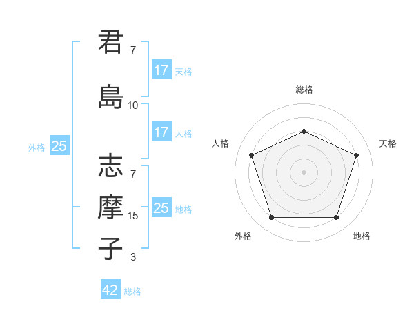 君島 志摩子さんを姓名の画数から五運を鑑定