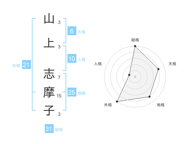 山上 志摩子さんを姓名の画数から五運を鑑定