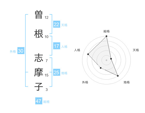 曽根 志摩子さんを姓名の画数から五運を鑑定