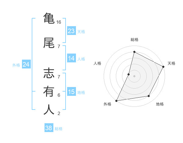 亀尾 志有人さんの天格は23画の5点!