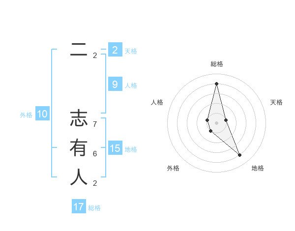 二 志有人さんの総格は17画の4点!