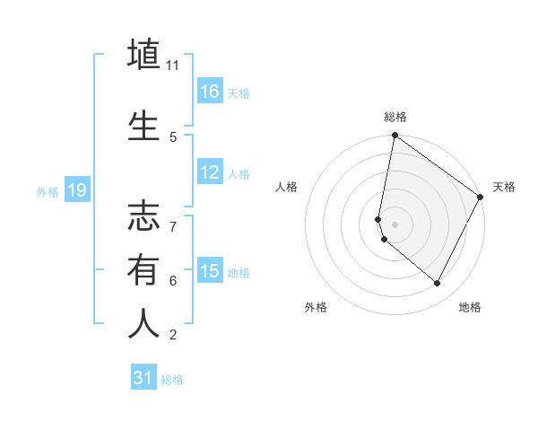 埴生 志有人さんの天格は16画の5点!
