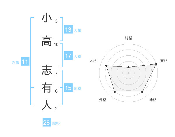 小高 志有人さんの天格は13画の5点!