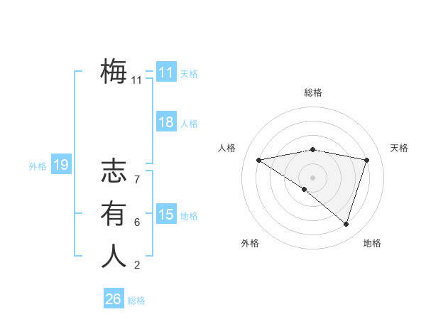 梅 志有人さんの総格は26画の2点!