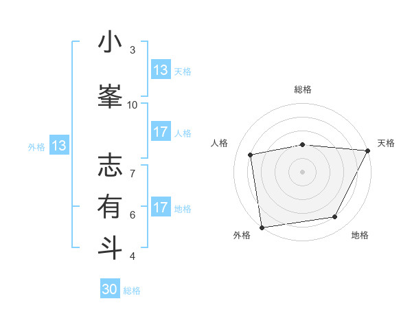 小峯 志有斗さんを姓名の画数から五運を鑑定