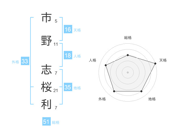 市野 志桜利さんを姓名の画数から五運を鑑定
