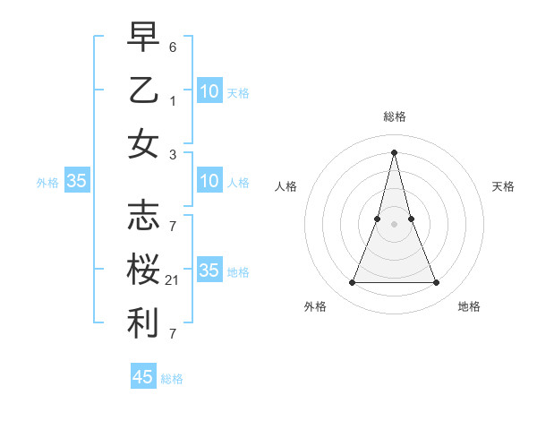 早乙女 志桜利さんを姓名の画数から五運を鑑定