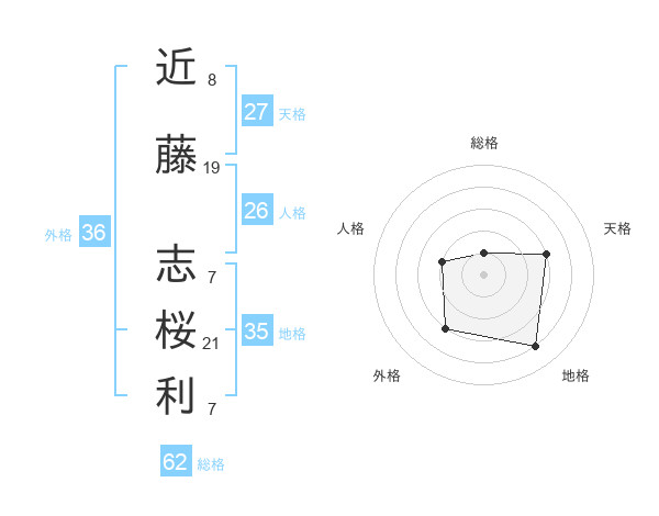 近藤 志桜利さんを姓名の画数から五運を鑑定