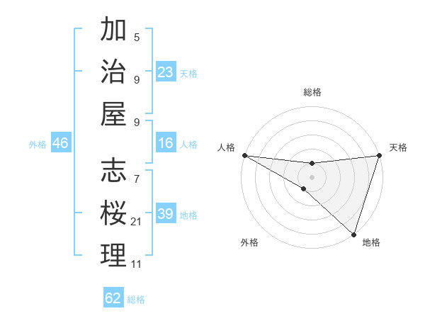 加治屋 志桜理さんを姓名の画数から五運を鑑定
