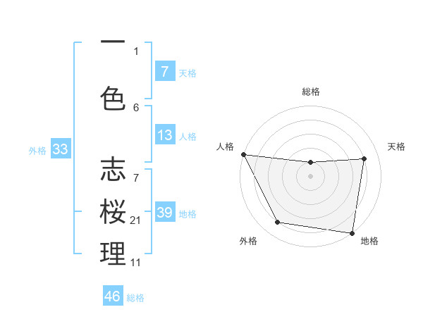 一色 志桜理さんの地格は39画の5点!