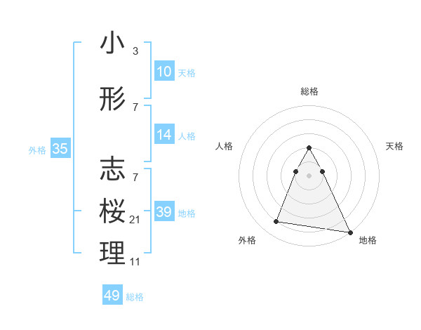 小形 志桜理さんを姓名の画数から五運を鑑定