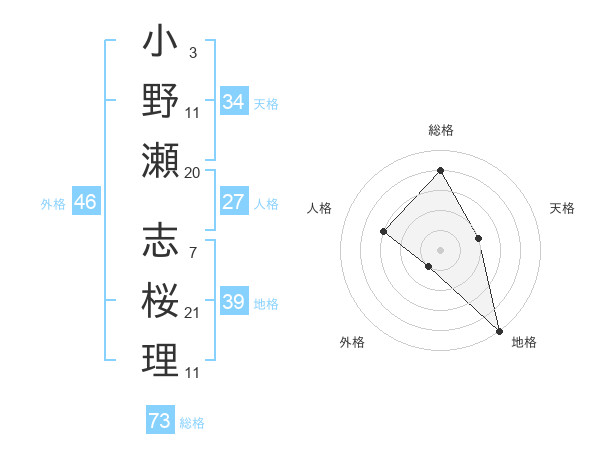 小野瀬 志桜理さんを姓名の画数から五運を鑑定