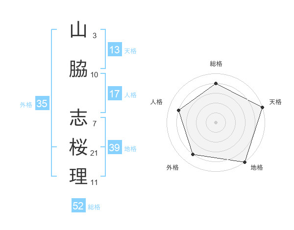 山脇 志桜理さんの総格は52画の4点