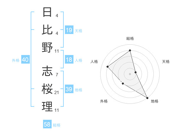 日比野 志桜理さんを姓名の画数から五運を鑑定