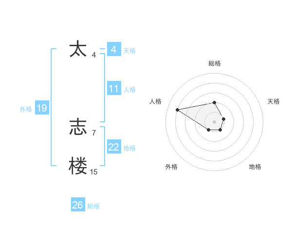 太 志楼さんの総格は26画の2点!