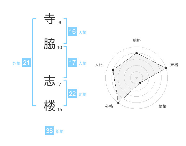 寺脇 志楼さんを姓名の画数から五運を鑑定
