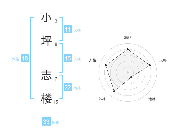 小坪 志楼さんの天格は11画の4点!